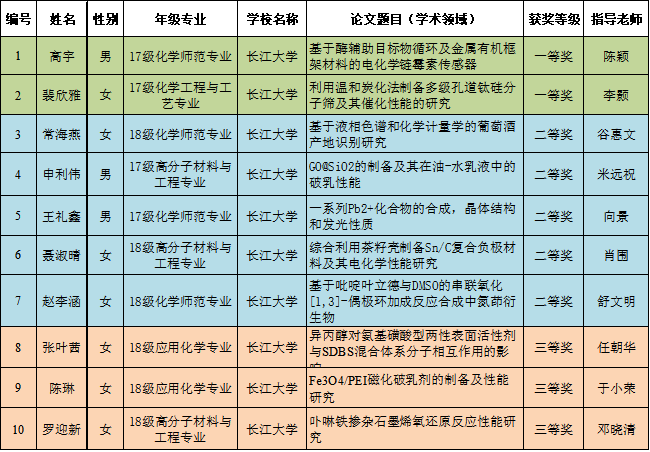 化工学子在省第十三届老员工化学(化工)学术创新成果报告会上喜获佳绩