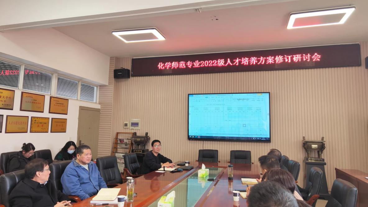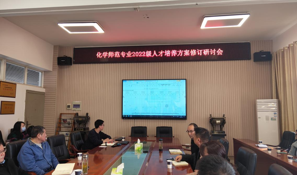 为进一步加强人才培养,2022年11月17日下午,太阳集团122cc在14教西303会议室召开了化学师范专业2022级课程教学大纲及人才培养方案修订研讨会。会议由化学系主任舒文明老师主持,经理颜学敏、副经理吴爱斌以及各位骨干教师参加讨论。