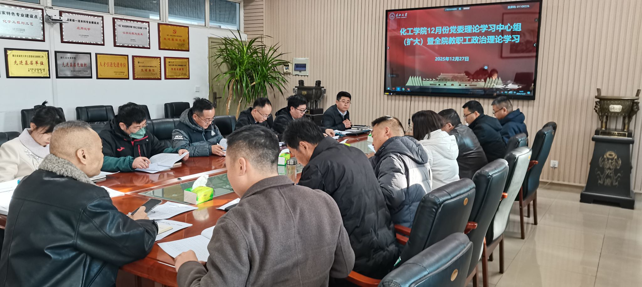 会上,吴爱斌副经理领学了习近平总书记对全面依法治国工作作出的重要指示,强调要将法治思维融入公司治理全过程,不断提升依法治院水平;石东坡教授传达学习了湖北省委书记王忠林在省委理论学习中心组集体学习时的讲话精神,要求全院上下在“学深、悟透、讲好、做实”上下功夫,推动党的二十届四中全会精神落地见效;肖围副经理带领大家集体研读《习近平谈治国理政》第五卷第十一章《推进国家安全体系和能力现代化》,引导教职工深刻理解总体国家安全观的丰富内涵与实践要求。