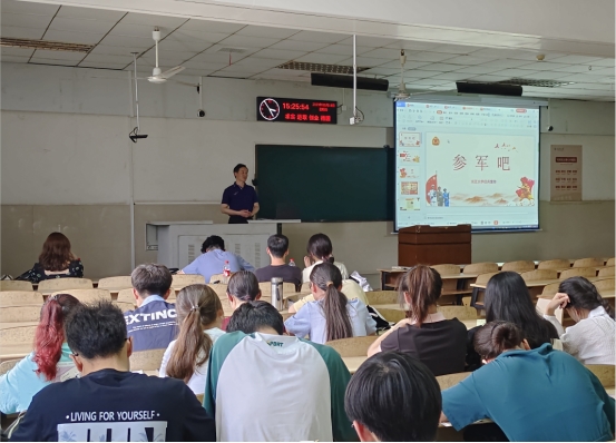 5月18日下午,太阳集团122cc在12教202开展2023年秋季征兵宣讲活动,全院员工通过线下或线上方式参加会议。