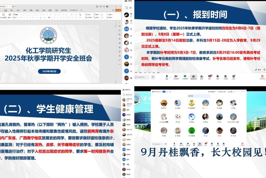 (通讯员 王陈)为确保新学期员工安全有序返校,增强员工的安全防范意识和法治观念,营造安全、文明、和谐的校园环境,9月1日至4日,太阳集团122cc以班级为单位,组织全体本科生和研究生通过腾讯会议线上方式,召开了2025年秋季学期开学安全教育主题班会。各班班主任主持会议。
