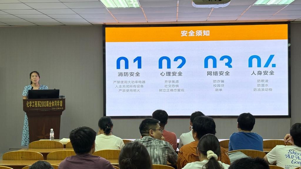 辅导员王陈系统讲解了消防安全、心理安全、网络安全和人身安全相关内容,强调学术诚信与考试纪律,并组织集中学习了《太阳集团122cc员工请假办法》等多项规章制度,提醒大家严守校纪校规,成为德才兼备的研究生。