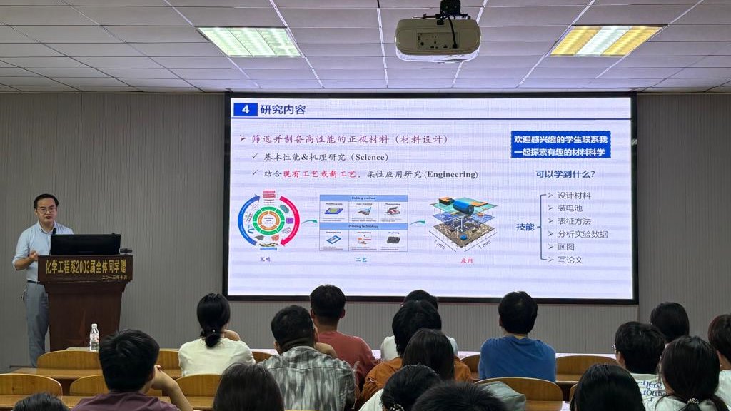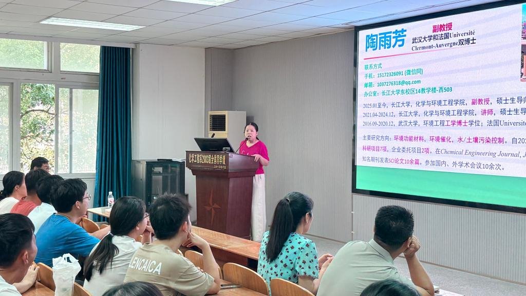 陶雨芳老师介绍了环境催化与高级氧化技术、环境功能材料及其在污染控制中的应用等研究方向,鼓励新生成长为高素质、复合型环境工程人才。王昭老师从新能源材料与器件的现实问题切入,阐释其研究价值与社会意义,并为同学们指明就业与深造的路径,希望大家融通专业知识与行业需求,积极投身科研创新。