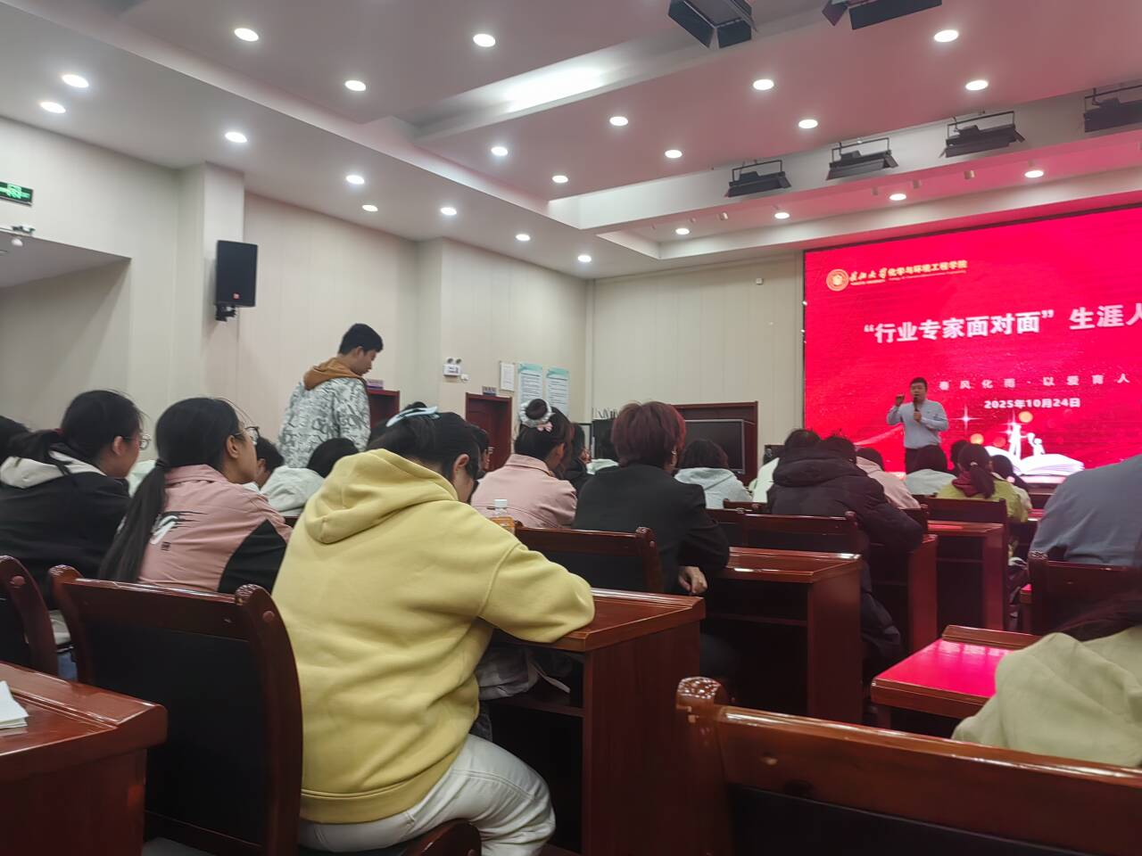 在生涯访谈环节,柯锦康针对"化学化工专业跨行业就业可行性""实习与考研时间分配"等具体问题提供定制化建议。2024级高材专业员工王同学表示:"柯老师用真实案例拆解了职业规划的迷雾,让我明确了'先扎根专业再拓展边界'的成长路径"。