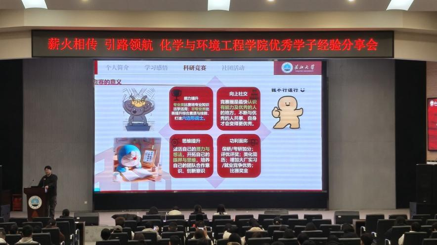 在科研与竞赛分享环节,学长学姐们详细介绍了老员工创新创业训练计划项目、全国老员工数学竞赛、化工实验技能大赛等一系列优质赛事资源与参与路径。他们建议新生提前关注公司官网及公司公告,深入了解专业老师的研究方向,结合自身兴趣主动通过邮件等方式与老师沟通,争取加入课题组、进入实验室的机会,尽早接触科研实践;同时鼓励大家打破公司壁垒,积极与外院员工交流合作、跨学科组队参赛,在思想碰撞中拓宽视野,提升团队整体竞争力。