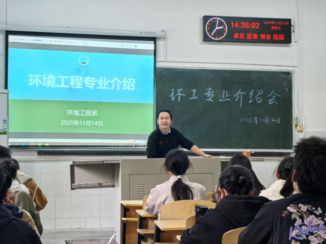 11月14日,环工系主任朱米家老师详细讲解了环境工程专业的核心课程体系、工程教育认证成果及未来发展方向。他特别介绍了毕业生可考取的各类从业资格证书,为员工提供实用的职业发展参考。周建军老师则结合行业趋势,展示了环工专业广阔的就业前景,并勉励同学们夯实基础,为未来的科研或职场之路做好充分准备。