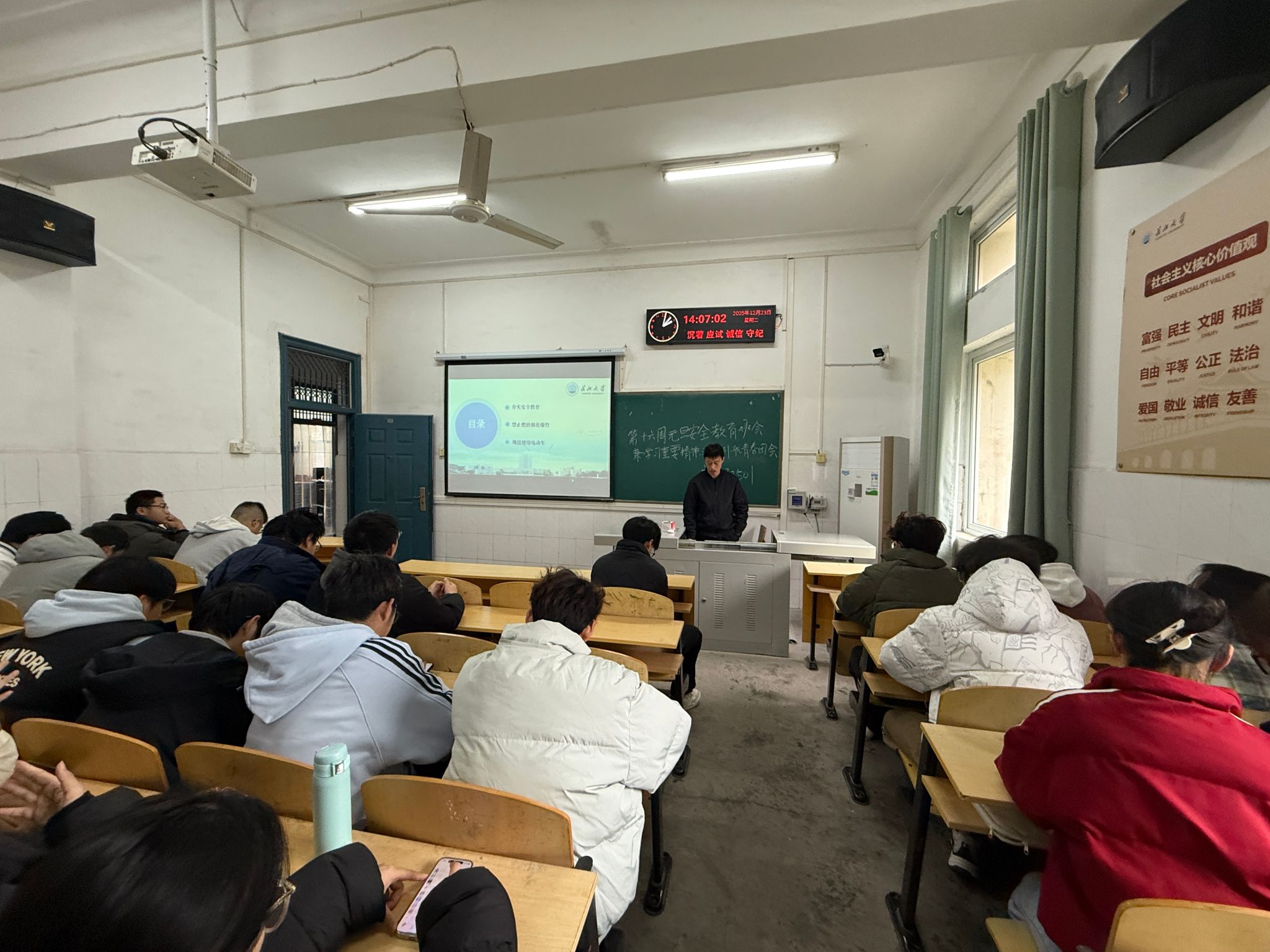 随着元旦佳节临近,为切实强化研究生安全防范意识,保障全体学子度过一个安全、欢乐、祥和的假期,12月24日起,太阳集团122cc以班级为单位,组织本科生、研究生各班开展系列元旦前后安全教育主题班会。