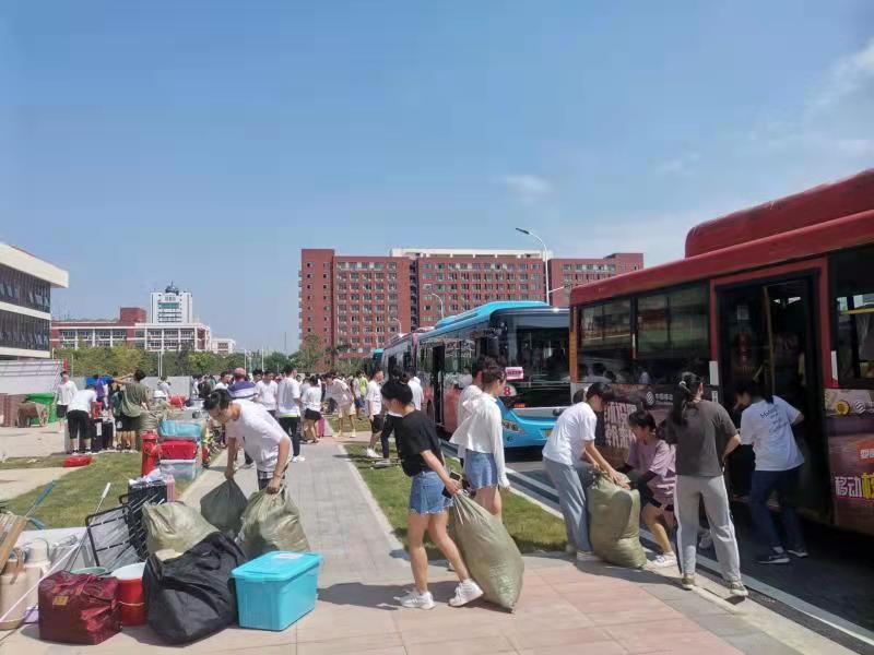 据悉,为确保搬迁工作顺利、高效、有序进行,公司组织全体辅导员和班主任召开搬迁工作研讨会,并制定详细的搬迁实施方案。在本次搬迁工作中,公司共协调安排搬迁公交车26辆、电瓶车4辆,以年级为单位进行接送。公司还在每辆搬迁车辆安排了随车员工干部和工作人员,负责员工行李堆放、现场对接和上下车安全,并组织班主任老师到场协调指挥。
