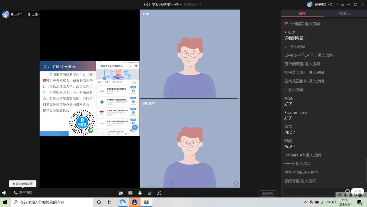 (通讯员 郭先哲)为做好疫情期间公司2020届毕业生就业工作,3月1日晚7时,公司党委书记刘桂生、副书记李秋果、毕业班班主任,毕业生辅导员和2020届未就业毕业生齐聚QQ群课堂召开就业工作推进视频会。会议由16级辅导员杨云锋主持。