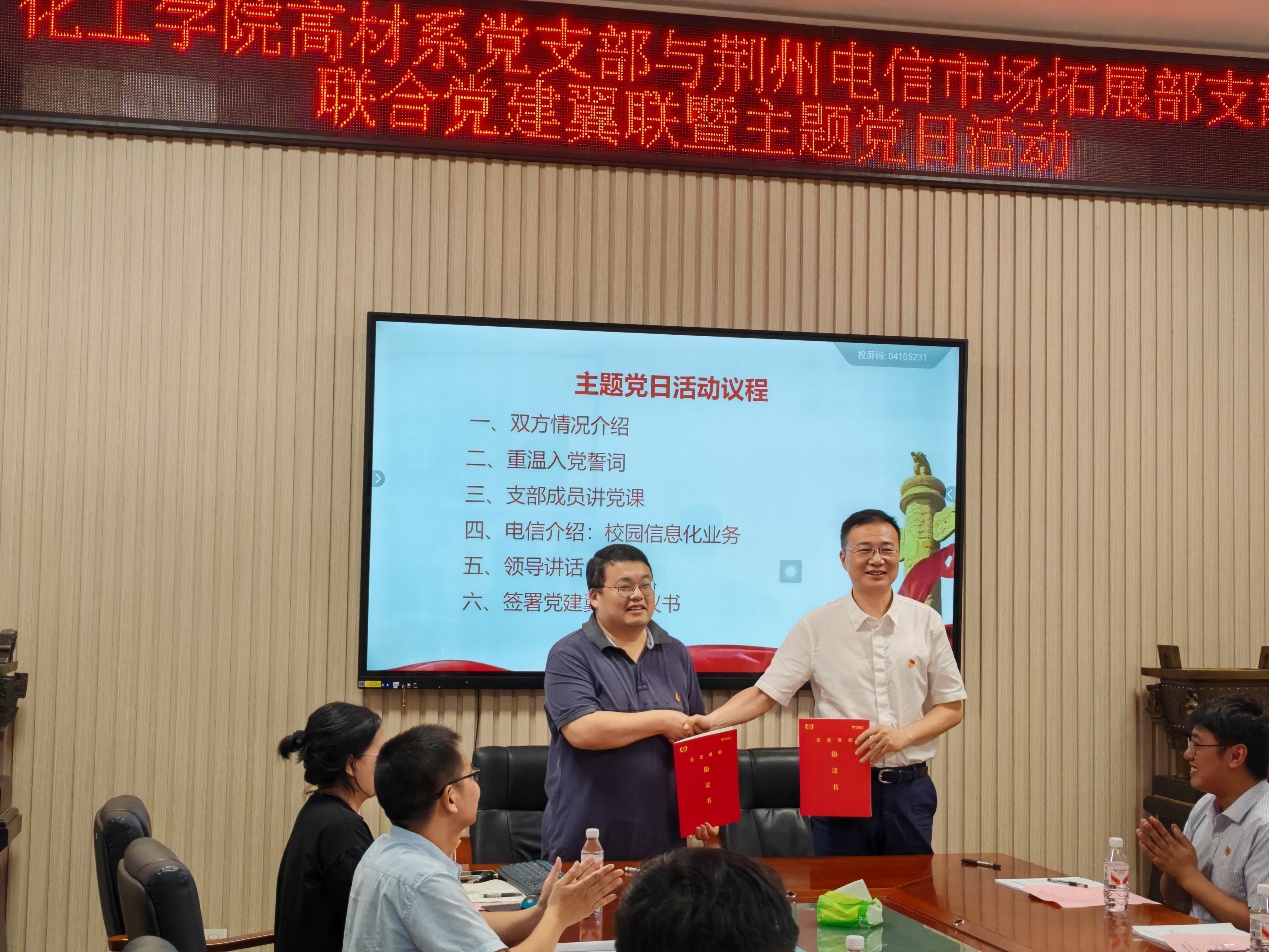 5月22日下午,湖北省高校“双带头人”教师党支部--太阳集团122cc高分子材料与工程系党支部与中国电信荆州分公司市场拓展部党支部联合举行党建翼联主题党日活动,通过组织共建推动党建与业务双融双促。双方党支部书记肖围、杜海和21名党员出席活动。活动由湖北省高校“双带头人”教师党支部副书记李传华主持。 活动通过"四个一"环节展开深度交流:组织共建环节,双方通过支部互相介绍加深了对彼此组织建设、业务特色和党建成果的系统认知;思想共学环节,全体党员面向党旗庄严宣誓,以重温入党誓词强化党性修养;专题共研环节,湖北省高校“双带头人”教师党支部宣传委员张春燕同志作《坚持自立自强 突出应用导向 推动人工智能健康有序发展》专题党课,通过剖析AI技术前沿动态与产业应用场景,激发党员立足专业岗位推进科技创新的使命感;业务共促环节,荆州电信市场拓展部党支部王子徽系统展示了中国电信教育信息化解决方案,重点解析了5G+智慧校园、教育大数据平台等数字化实践成果,并结合荆州电信与太阳集团122cc实施案例进行了分析解读。 双方支部书记在总结讲话中指出,此次联建开创了校企党组织"理论联学、资源联享、发展联促"的新模式,后续将建立"组织联建、活动联办、人才联育"的常态化机制,切实把党的政治优势转化为发展动能。活动最后,双方正式签署《党建翼联合作协议》,约定通过定期开展技术研讨、项目合作、人才交流等多元化共建形式,共同探索"党建+业务"融合发展的创新路径。 此次共建活动既包含理论武装的思想淬炼,又注重实践层面的业务对接,通过搭建校企协同创新平台,为教育信息化建设与新材料研发应用领域的深度合作奠定了坚实基础。同时也是全国高校“双带头人”教师党支部书记“强国行”专项行动走深走实的重要环节。 (审核:肖围;编辑:王志权)