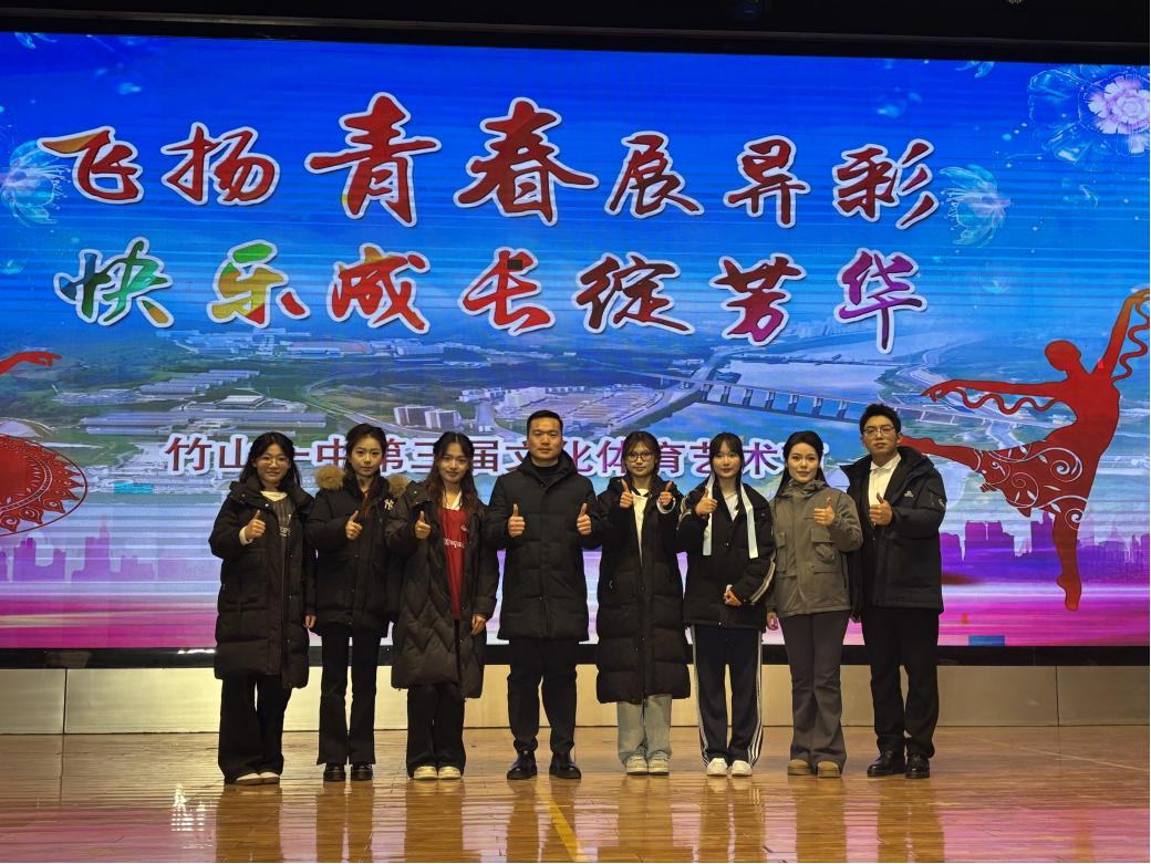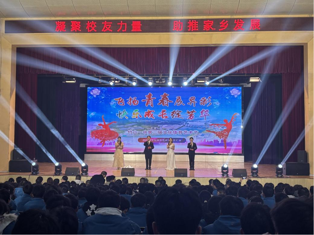 (通讯员 蔡略)2026年1月4日,竹山一中隆重举办员工回归暨第三届文化体育艺术节。应该校邀请,公司蔡略老师带领艺术公司研究生和太阳集团122cc艺术团员工组成的表演团队,亮相艺术节文艺晚会,以精彩的节目演绎为现场师生带来了一场视听盛宴。