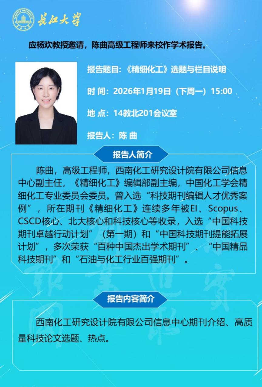 长江化工讲坛:高质量中文科技期刊投稿与撰写指南